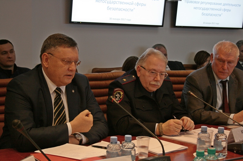 Начальник Главного управления государственного контроля и лицензионно-разрешительной работы Росгвардии Л. В. Веденов остановился на том, что важнейшая задача, стоящаяна сегодня перед охранным сообществом и Росгвардией как государственным органом, реализующим государственную политику в этой сфере, – это совершенствование правовой базы и правового регулирования деятельности негосударственной сферы безопасности. Созрела реальная необходимость в определенном изменении соответствующего законодательства.